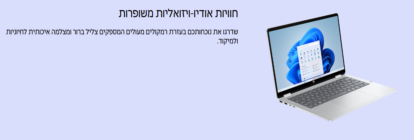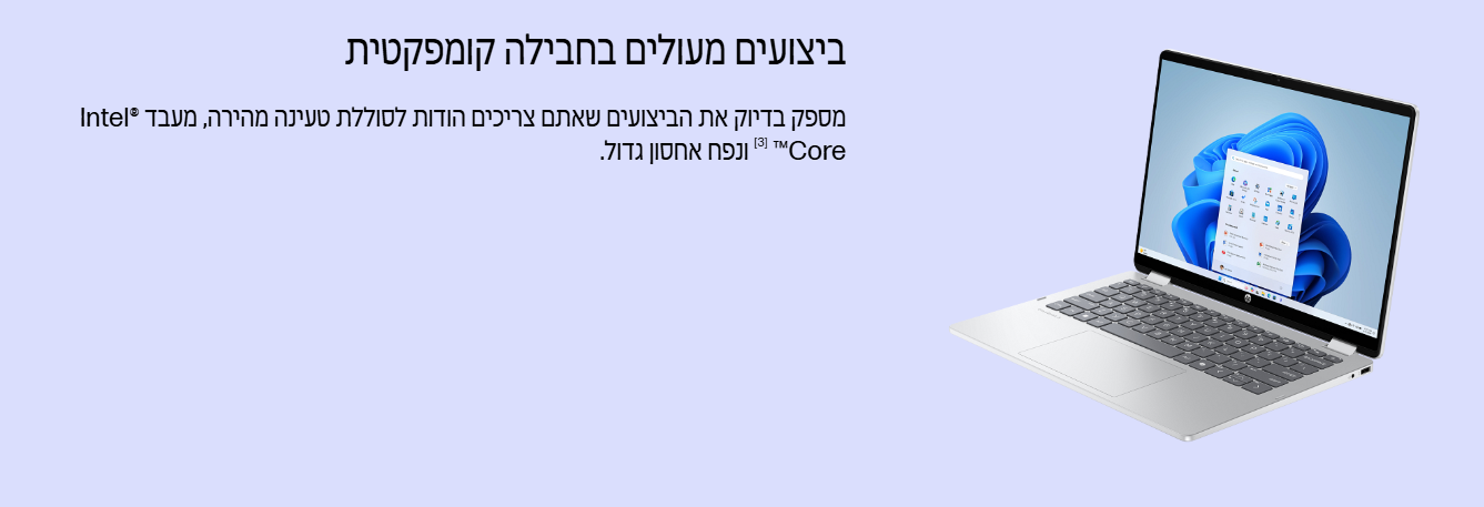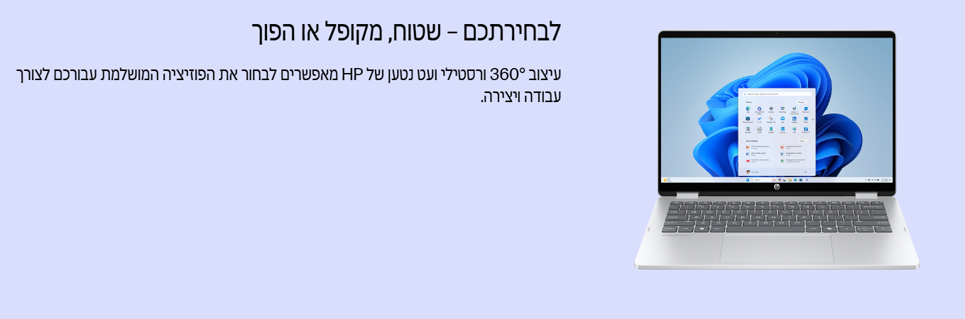 ה-HP OmniBook 5 הוא מחשב נייד 2 ב-1, הכולל אפשרות היפוך ב-360 מעלות שבאמצעותה תוכלו להשתמש במחשב איך שנוח לכם ובכל מקום! המחשב בעל מסך מגע 2K IPS micro-edge בגודל 14 אינץ', מעבד Intel Core 5, דיסק קשיח SSD בנפח 512GB, סוללה עוצמתית לשימוש של עד 15 שעות, זכרון פנימי 16GB DDR4 ומערכת הפעלה Windows 11 Home